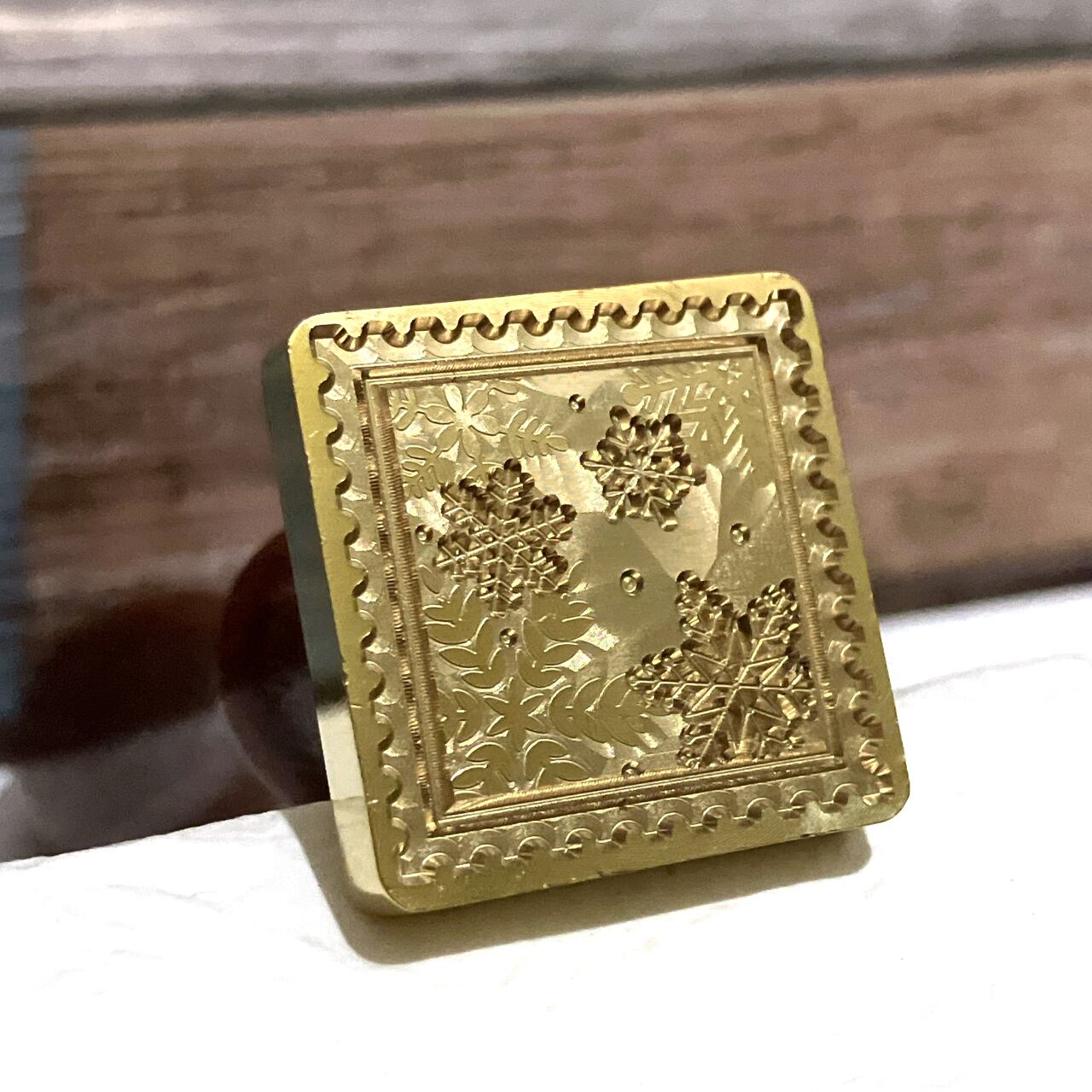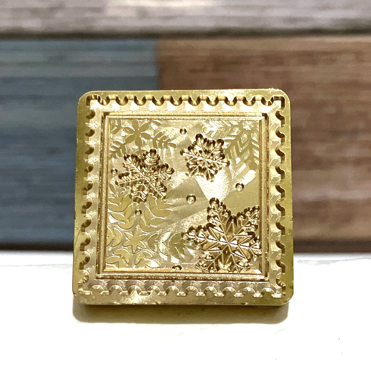 雪の結晶が描かれた四角い形のスタンプヘッドです。