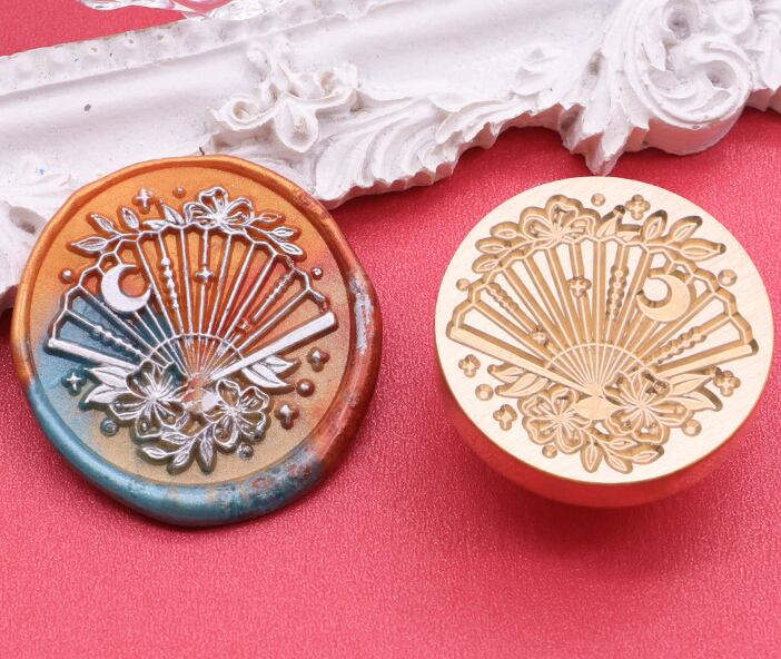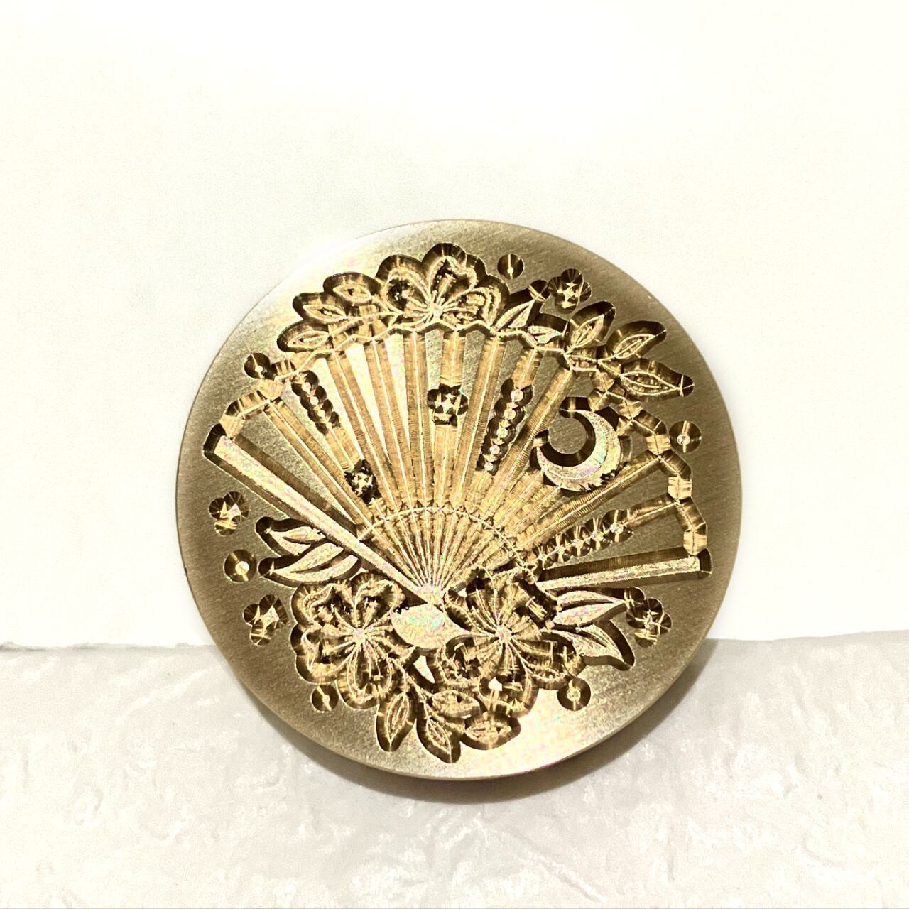 広げた扇子に花や葉、月などをデザインしたデザインのスタンプヘッドです。